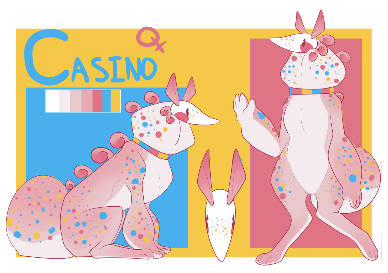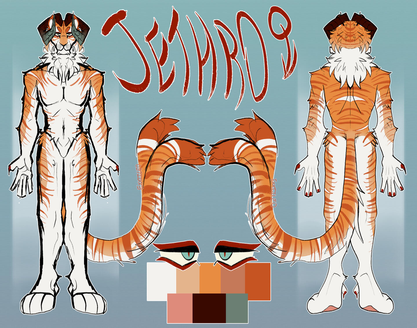 Base reference includes left and right marking fullbodies (reflected to show design on both sides to show differences), a headshot, any information you want on it, eye reference, palette reference, and simple abstract background.